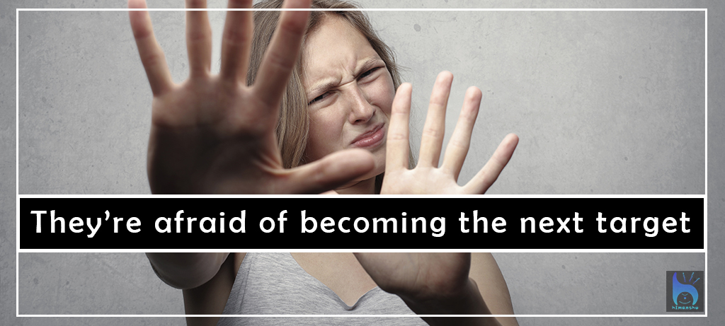 - They’re afraid of becoming the next target. Nobody wants a bully on their back, so they make excuses for the bullies to protect themselves from being ostracized and to keep from arousing the bullies’ anger. These people often “don’t want to make waves” or “rock the boat.”