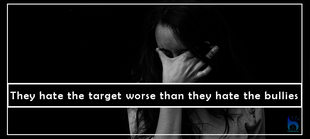 - They hate the target worse than they hate the bullies. They take the lesser of two evils route. If people hate the target worse than they do the bullies, they’re naturally going to side with the bullies and help demonize the target all for the satisfaction of seeing the victim suffer.